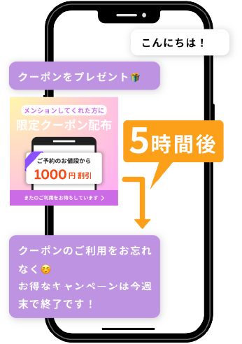 リアルタイムの返信ではなく、あえて時間をおいて返信を行うことで、フォロワーに適切なタイミングで情報を届けることが可能になります。リマインド通知やクーポン配布、イベント告知などにも役立ちます。