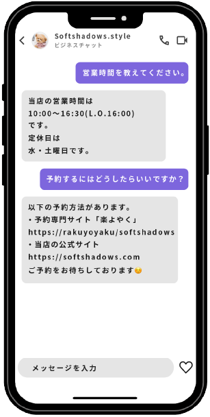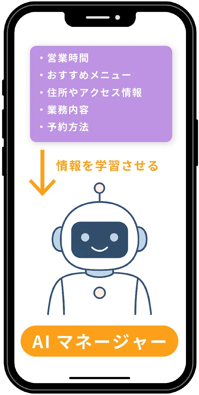 店舗情報やサービス内容をAIに学習させることで、営業時間、メニュー、価格などの基本情報に基づいた自動対応が可能になります。これにより、ユーザーからの問い合わせに迅速かつ正確に対応でき、業務の効率化を図ることができます。