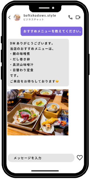 Instagramのシステムを活用し、AIがDMの内容を自動翻訳。ユーザーの言語に応じて適切な返信を行います。日本語だけでなく、英語や中国語など多言語に対応できるため、海外のフォロワーともスムーズにコミュニケーションが取れます。