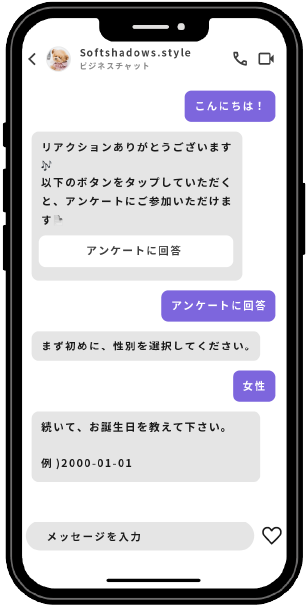 フォロワーが特定のアクション(例:コメント、DM送信など)を行った場合に、自動的にアンケートを送信する機能です。アンケート結果をもとに、ターゲットに合わせたアプローチが可能となり、より効果的なプロモーションや商品の訴求に役立ちます。